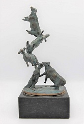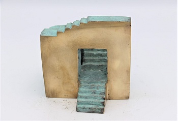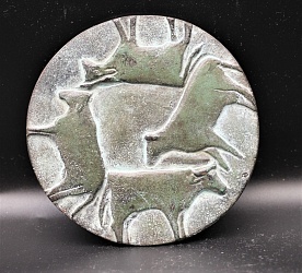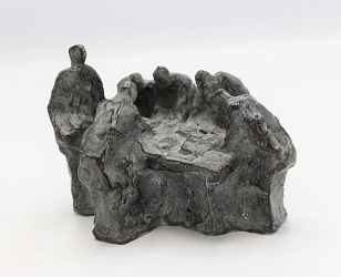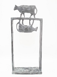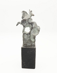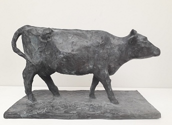 ‘Als beeldhouwer ben ik klassiek opgeleid, maar ben steeds op zoek gebleven naar nieuwe wegen. Daarom laat ik zowel bronzen figuratieve beeldjes zien als abstract werk. Penningen maakte ik veel in opdracht. In mijn vrije penningen is een zelfde ontwikkeling te zien als in mijn beelden. Mijn atelier op een boerenerf maakte veelvuldige studies van de koe en het spelen ermee onvermijdelijk.’